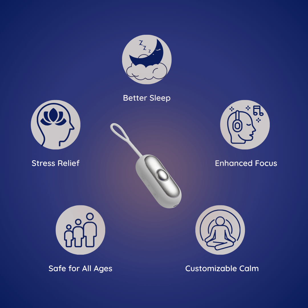 Its dual-mode design lets you switch between sleep and focus settings, while adjustable intensity levels ensure a personalized, comfortable experience. Best of all, it’s completely drug-free, non-invasive, and safe for both adults and kids — giving your whole family a simple, science-backed way to feel better every day.