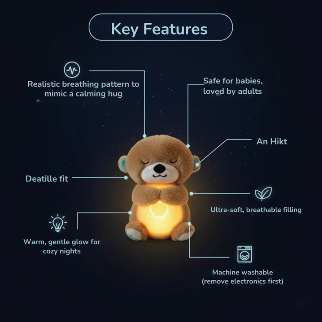 Whether it’s your baby fighting bedtime or you simply need a little peace after a long day, SnuggleBuddy™ is designed to calm minds, ease anxiety, and create a sense of safety. With a realistic breathing motion, gentle glow, and soothing sounds, SnuggleBuddy wraps you in warmth and tranquility — like a hug you can hold.