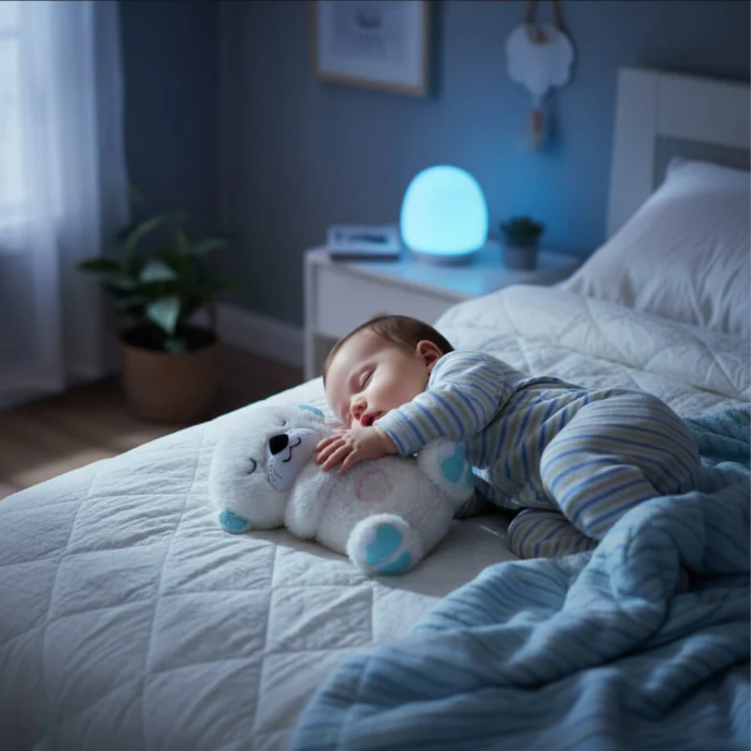 Built-in Sounds for Comfort: Lullabies, white noise, heartbeat rhythms, and nature sounds help quiet anxious thoughts and settle restless nights.